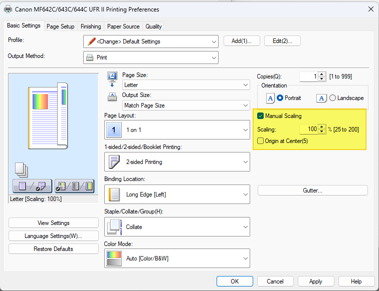 ⚠️ Important: If you allow windows to control the output of the printer, it may be setting these options for you automatically. Double check your printer settings, print one invoice and test.